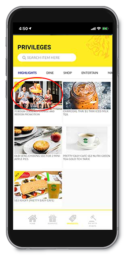 Click on Privileges > Highlights > Foreign Currency Charge and Redeem Promotion